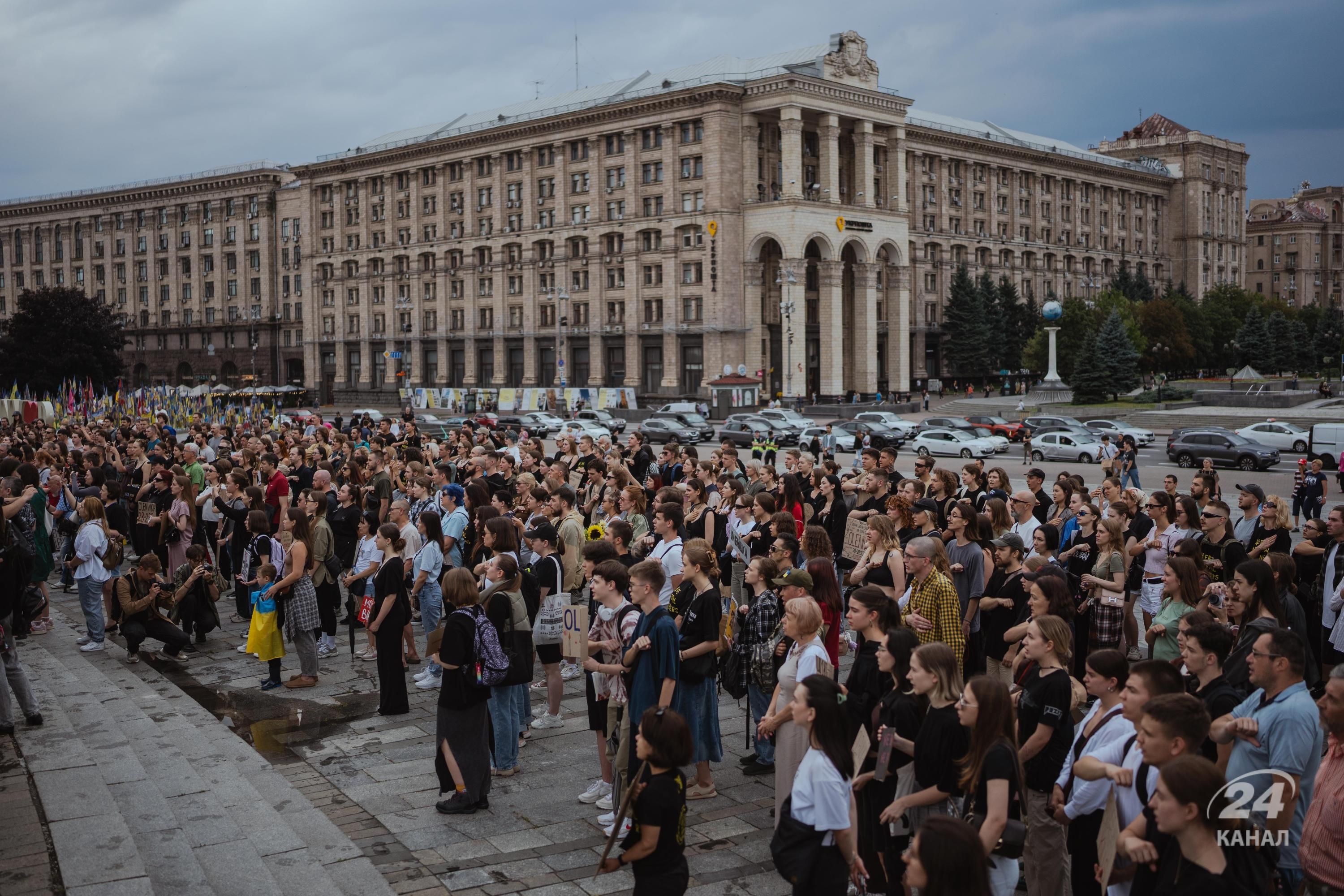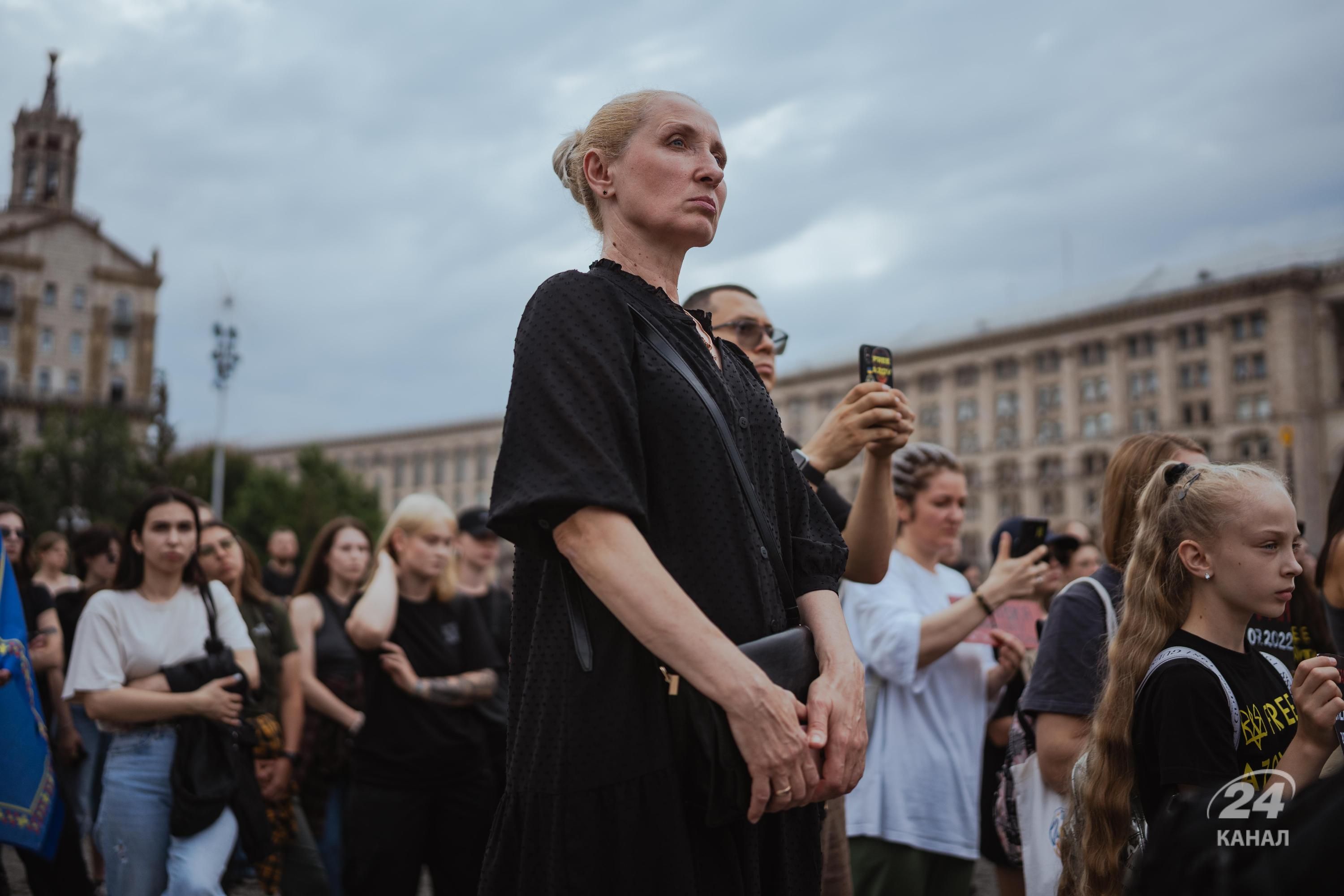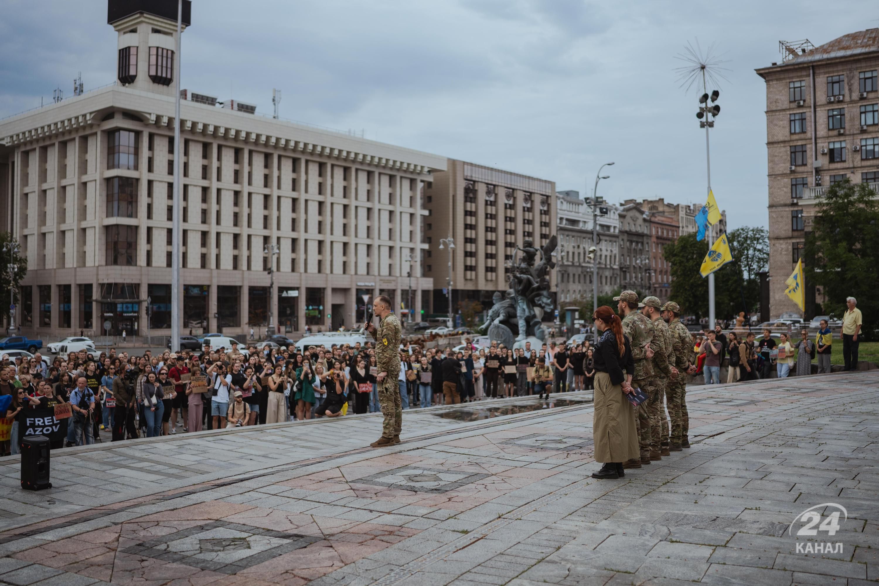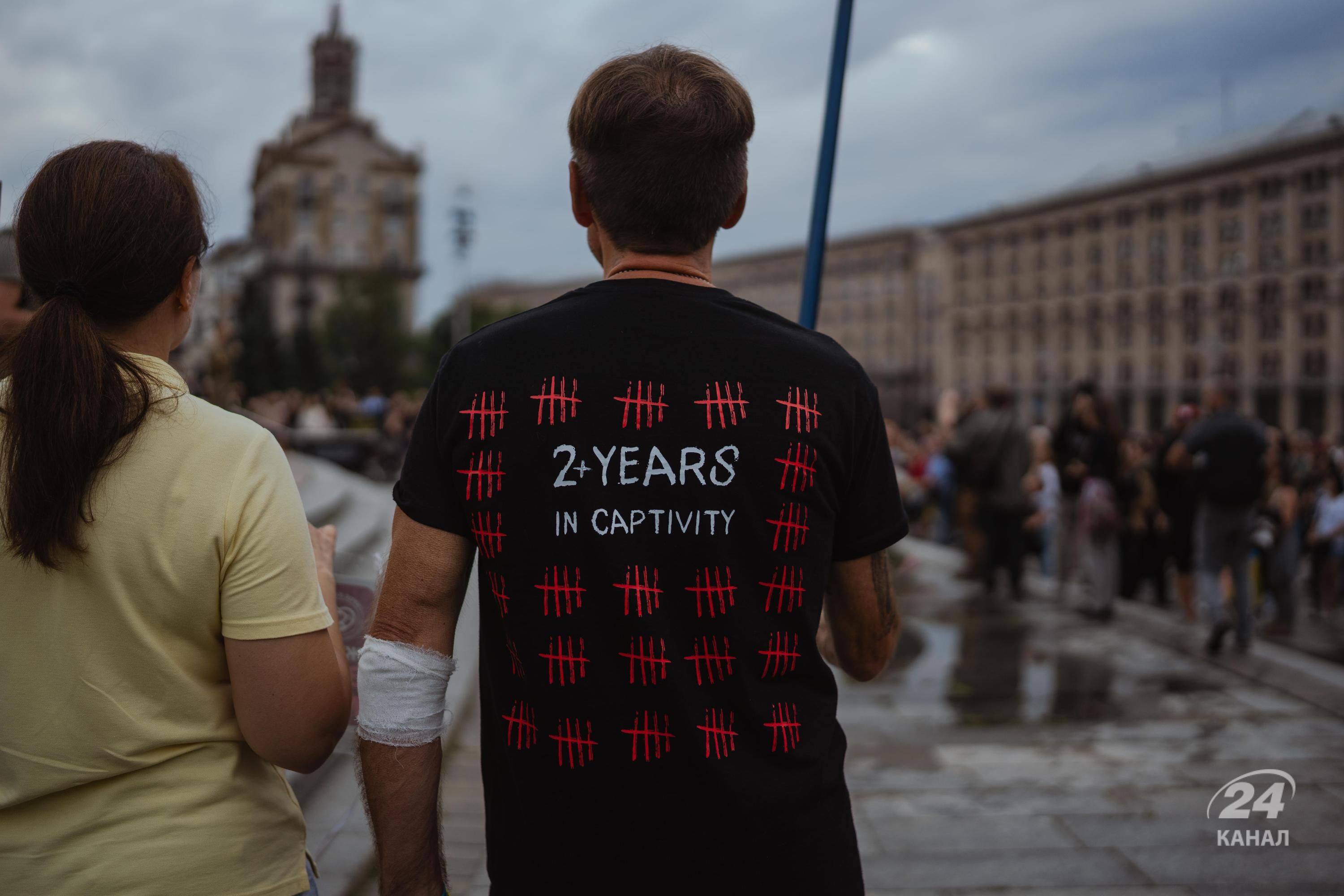 Аби вшанувати пам'ять загиблих та нагадати про військовополонених, люди також вийшли у центр столиці. На Майдані Незалежності зібралось понад 400 осіб. Серед них були діти, військові, ветерани війни та небайдужі до долі полонених і тих, хто загинув у неволі.