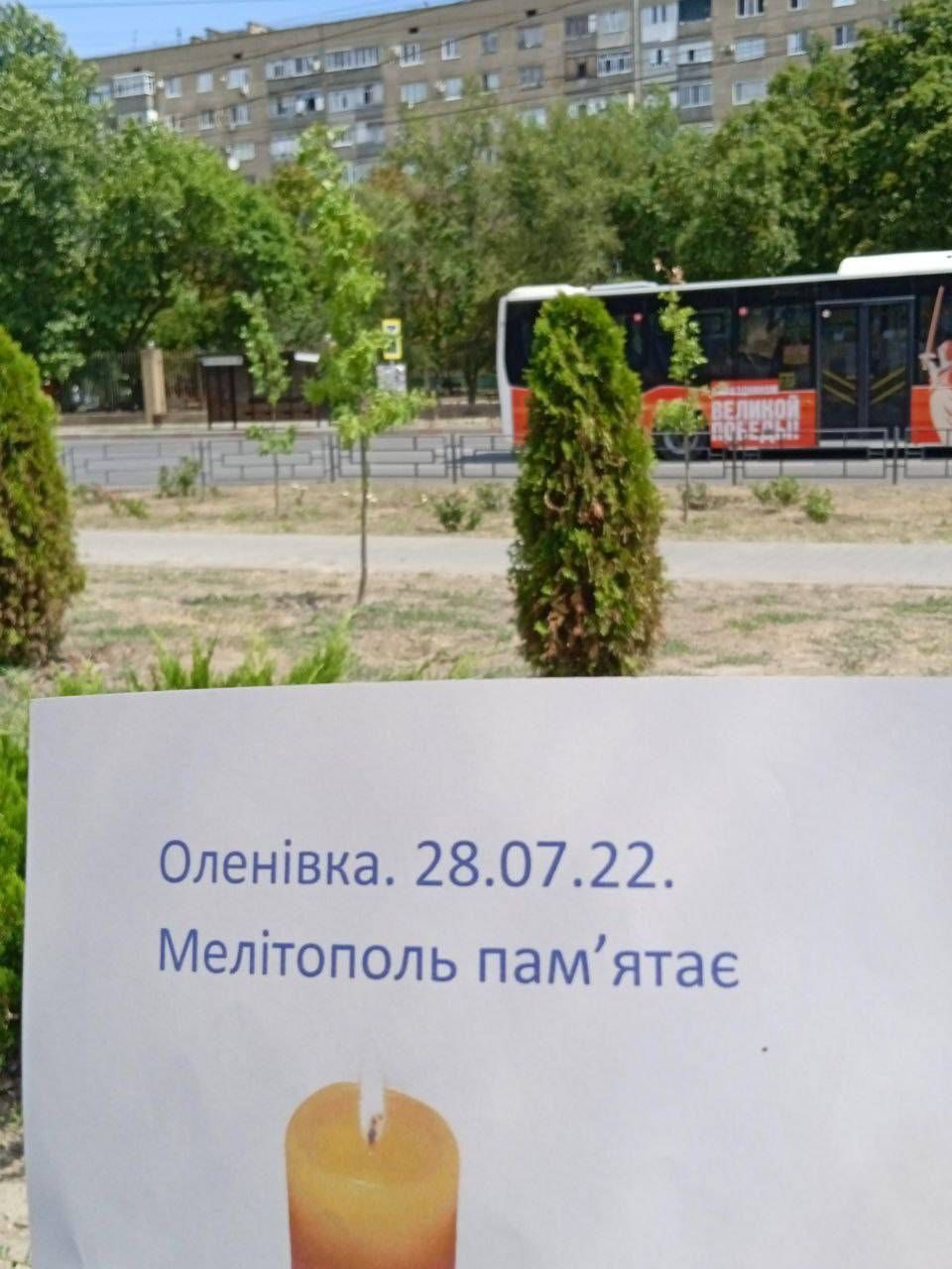 До вшанування пам'яті жертв теракту в Оленівці доєдналися мешканці тимчасово окупованих Донецька, Мелітополя, Луганська, Севастополя, Сімферополя, Бахчисарая та Генічеська.