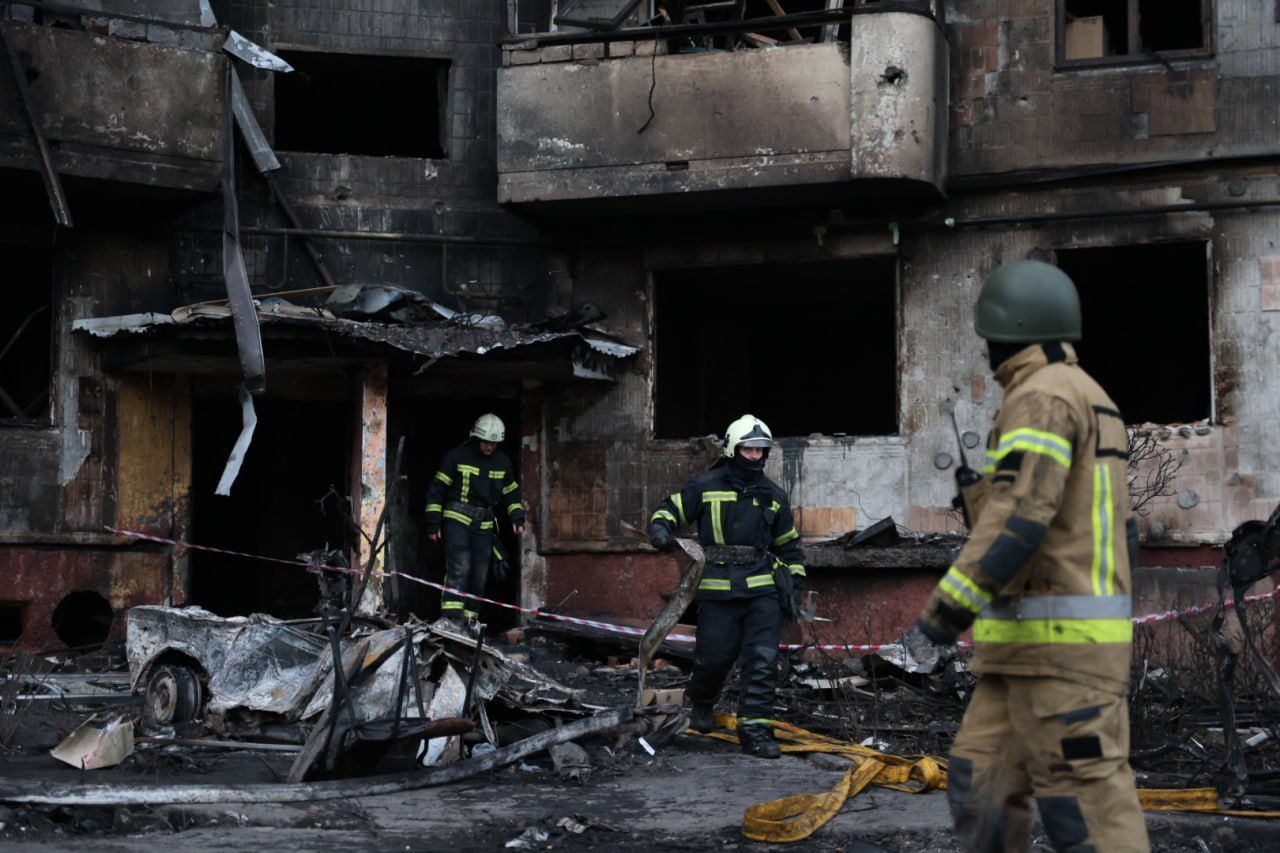 У Нацполіції повідомили, що постраждали дві дев'ятиповерхівки: в одній сталася пожежа, в іншій – руйнування між 3-м і 9-м поверхами.