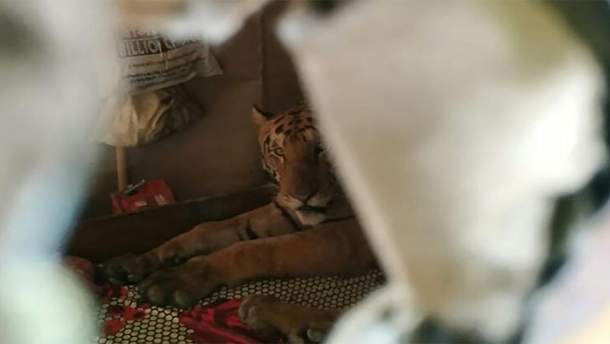 Тигрицю налякав дорожній рух на шосе, тож вона знайшла прихисток у житловому будинку.