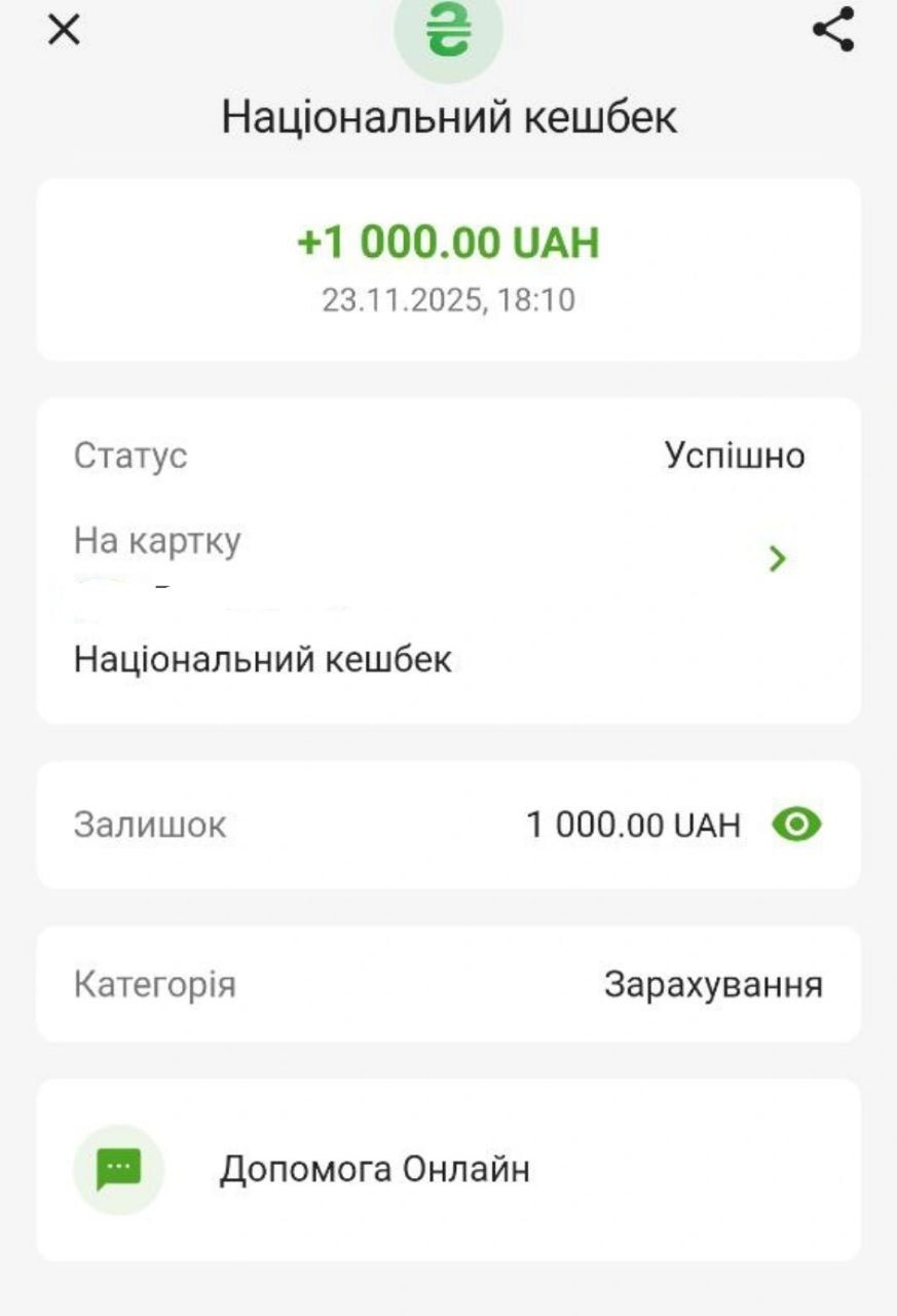 Подання заяв через застосунок Дія розпочалося 15 листопада і триватиме до 24 грудня 2025 року. Скористатись виплатою можна до 30 червня 2026 року.