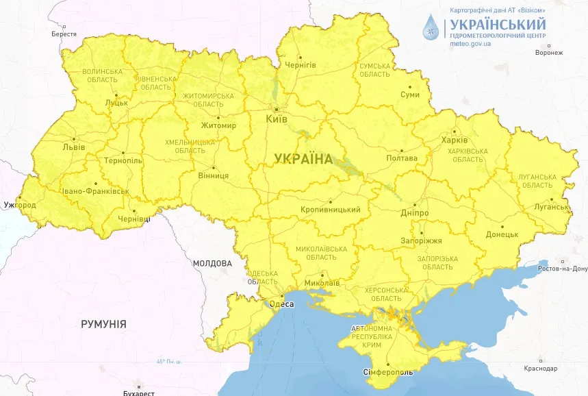 Жовтий рівень небезпеки в Україні 8 жовтня / Укргідрометцентр
