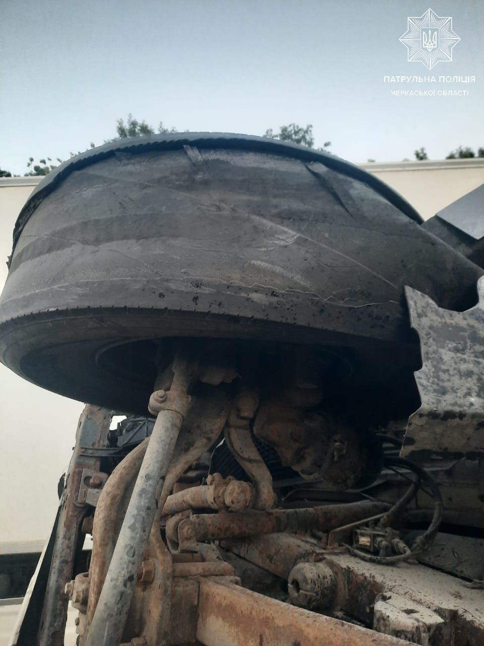 У середу, 13 серпня, патрульна поліція міста Умань отримала повідомлення про ДТП на автодорозі М-05 "Київ – Одеса". За даними правоохоронців, водій тягача Volvo з напівпричепом перед виїздом не забезпечив технічно справний стан автомобіля. Під час руху у фури розірвалося переднє ліве колесо.