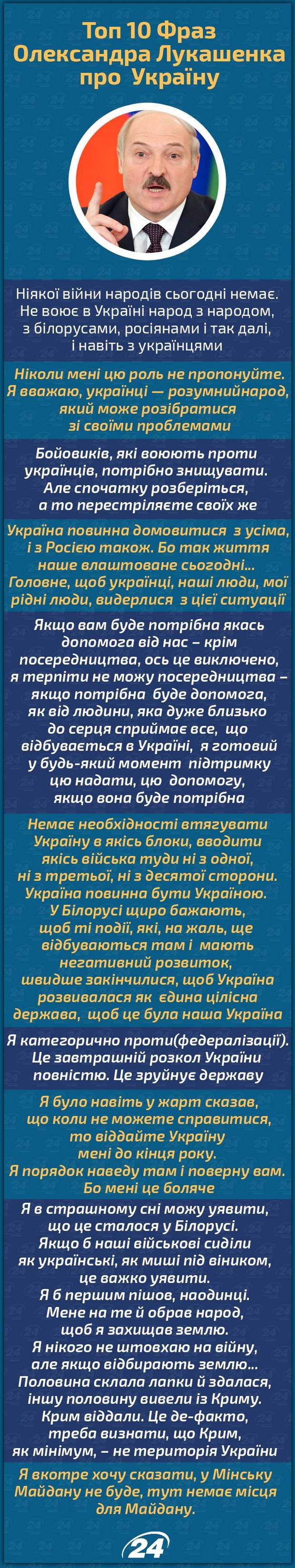 Президент Білорусі Олександр Лукашенко сьогодні святкує 60-річчя. До дня народження глави Білорусі ТОП-10 його цитат пов’язаних з подіями в Україні.