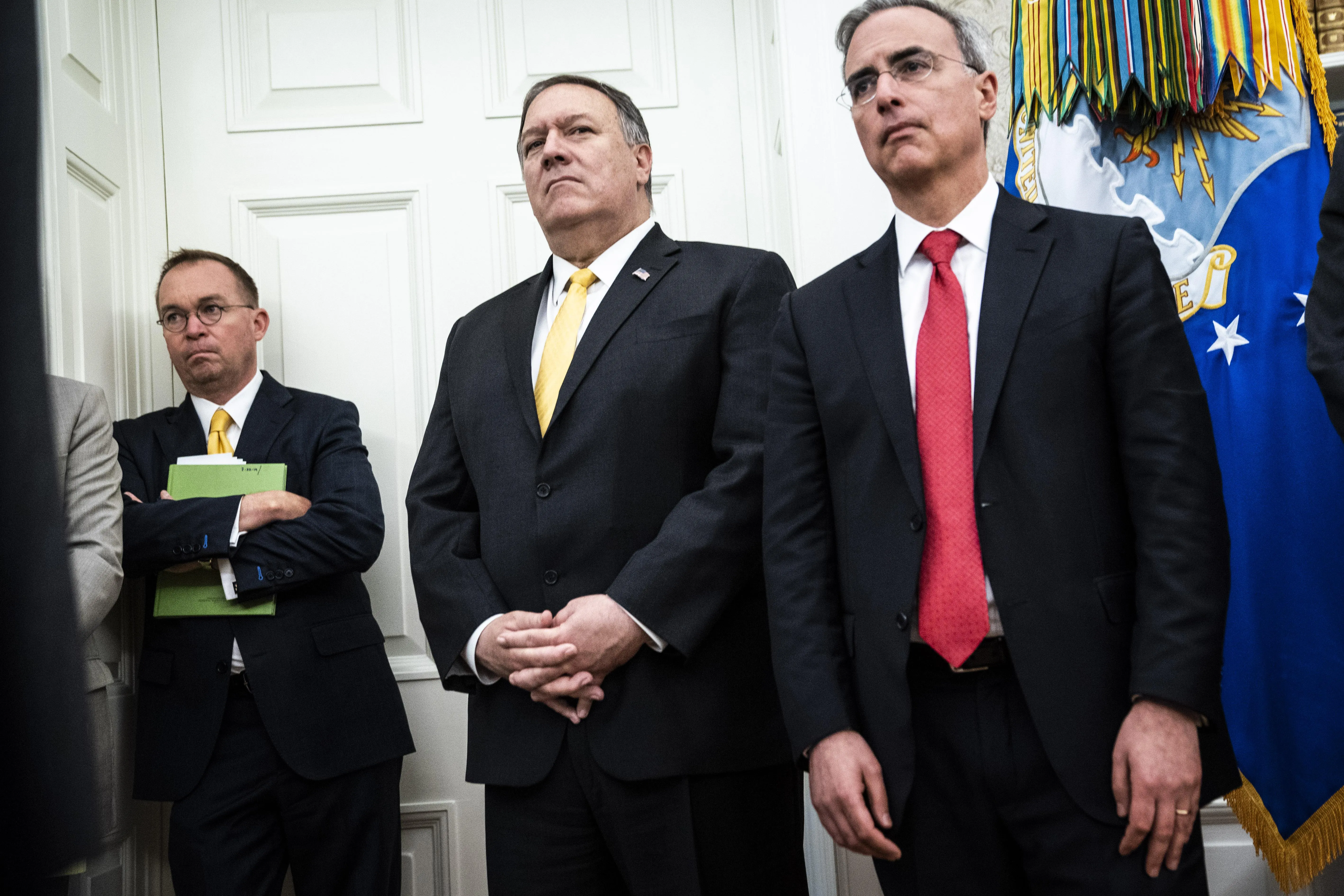 Держсекретар Майк Помпео, в.о. голови адміністрації Майк Малвані та юрист Білого Дому Пет Чіполлоне / photo: Getty Images