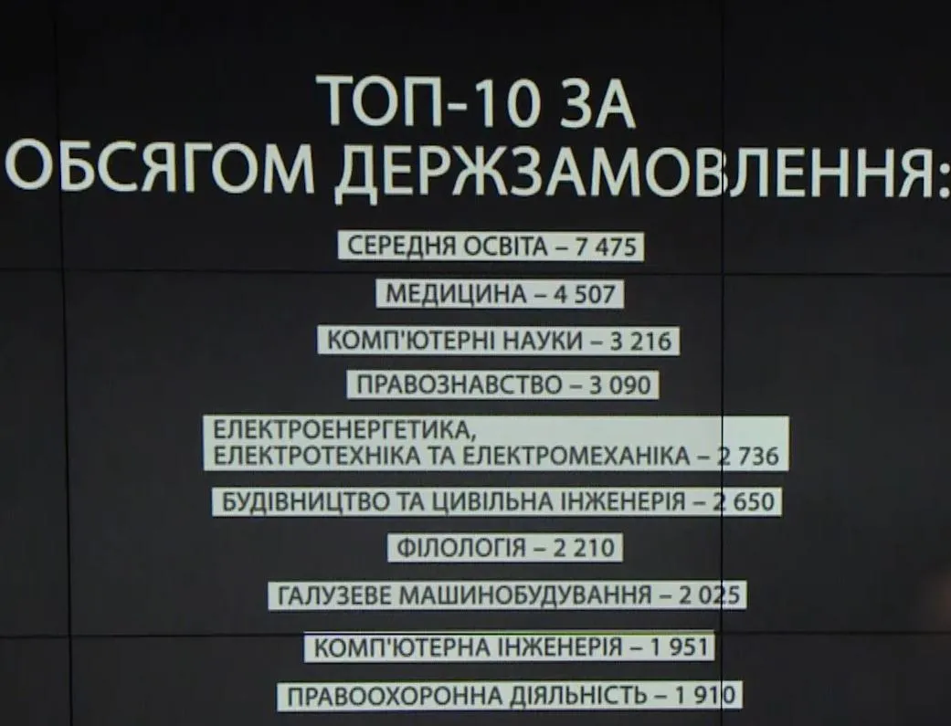 ТОП-10 спеціальностей за обсягом держзамовлення