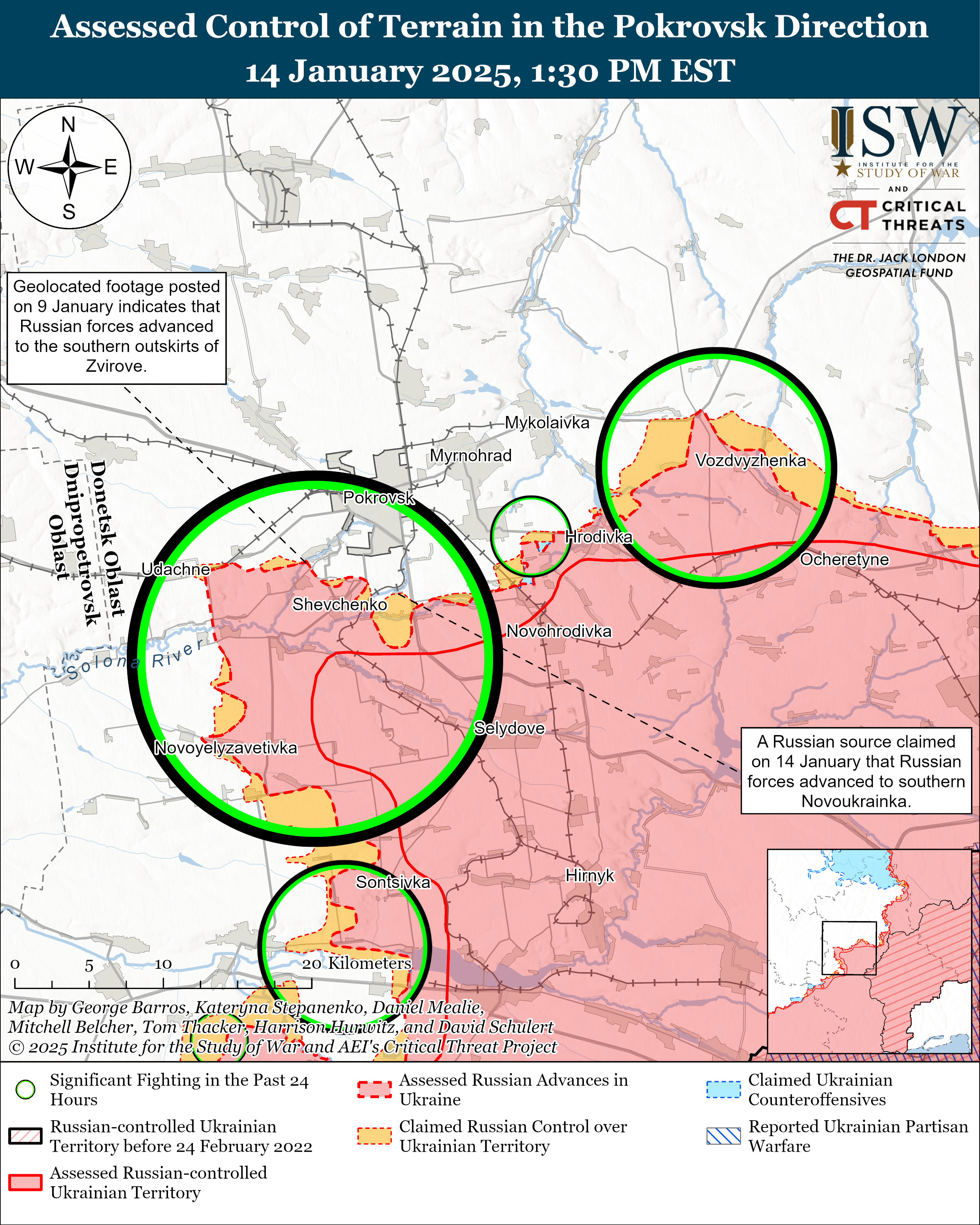 Бойові дії в Україні та Росії за 14 січня / Карти ISW