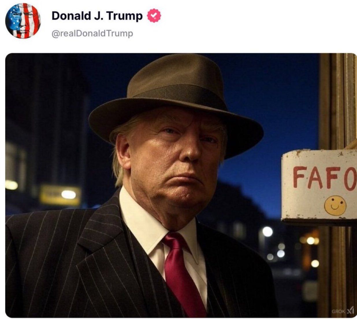 Дональд Трамп вже встиг відреагувати на заяву колумбійського президента, потроливши його згенерованим ШІ зображенням, де на задньому фоні напис "FAFO", що в американському сленгу означає іронічне та зухвале "Спробуй – і побачиш наслідки".