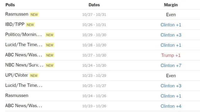 Як пише New York Times, це поки що єдине опитування громадської думки, в якому перемагає Дональд Трамп. У решті опитувань, перевагу впевнено утримує Гілларі Клінтон.