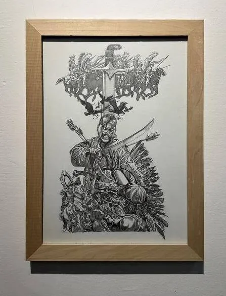 Робота належить родині художника. Це ілюстрація до поеми Ліни Костенко "Берестечко",