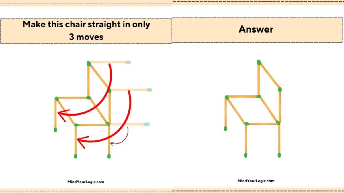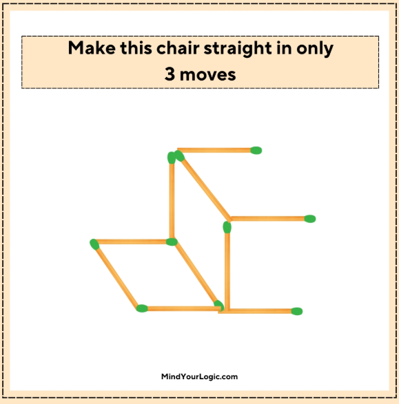 - Головоломка із сірниками полягає в тому, щоб поставити стілець рівно, пересунувши лише три сірники.