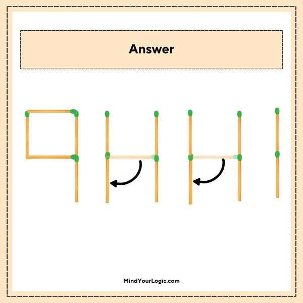 - Головоломка полягає в переміщенні двох сірників, щоб перетворити число 9441 на найбільше можливе.