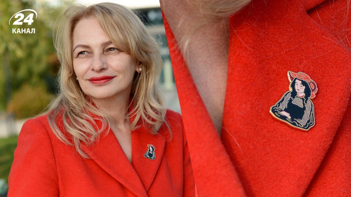 Пін з "Дівчиною у червоному капелюсі" художника Олександра Мурашка / Фото Назарія Лазура