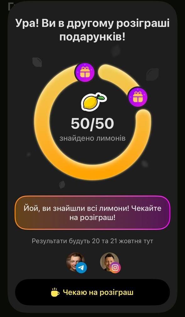 Ті, хто знайде усі 50 лимонів зможе позмагатися за приз у вигляді 1 мільйона гривень.
