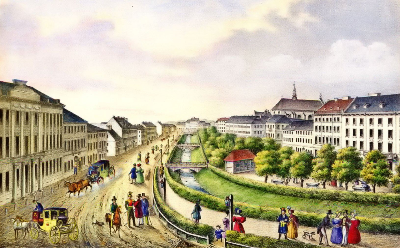 Вигляд проспекту Свободи в першій половині 19 століття / Літографія К.Ауера