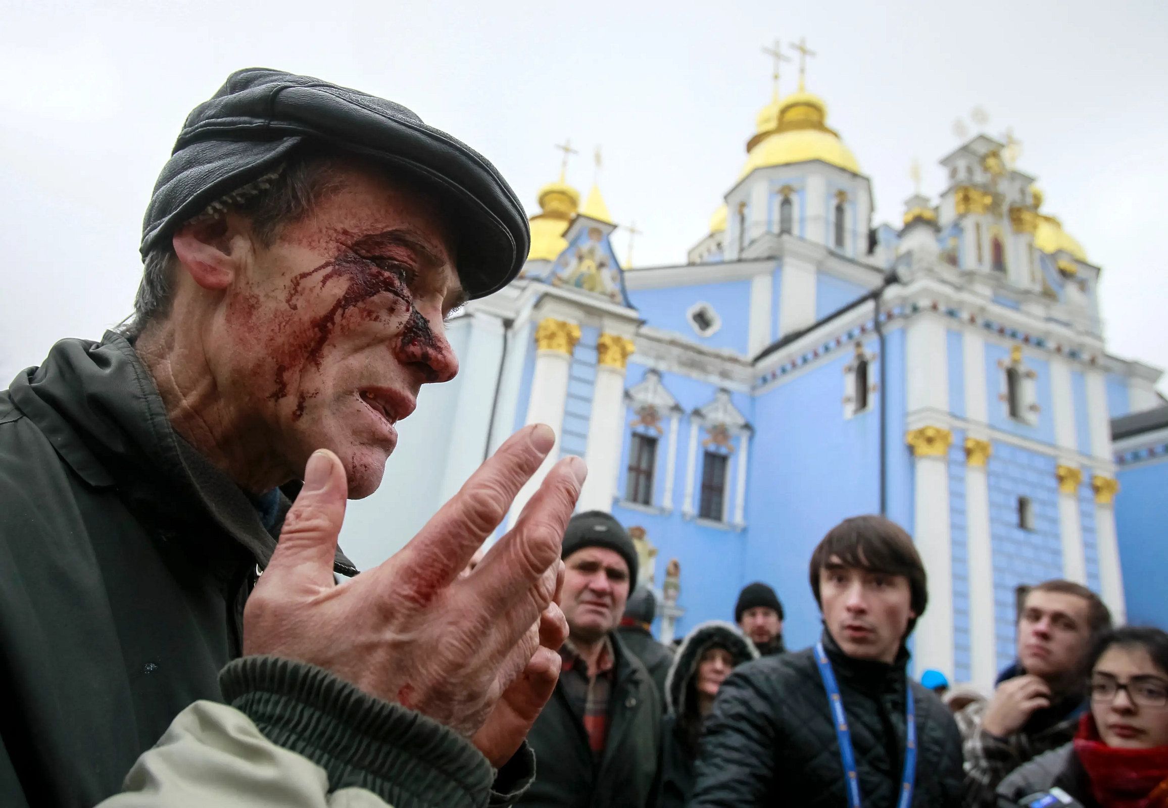 Постраждалий майданівець на Михайлівській площі / Фото Гліба Граніча