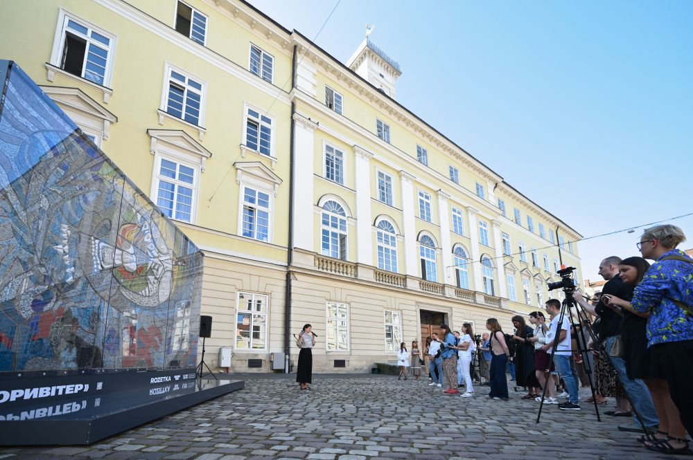 13 августа во Львове презентовали воссозданную версию уникальной мозаики, оригинал которой был уничтожен в Мариуполе. Накануне она была в Лондоне во время боя Александра Усика.