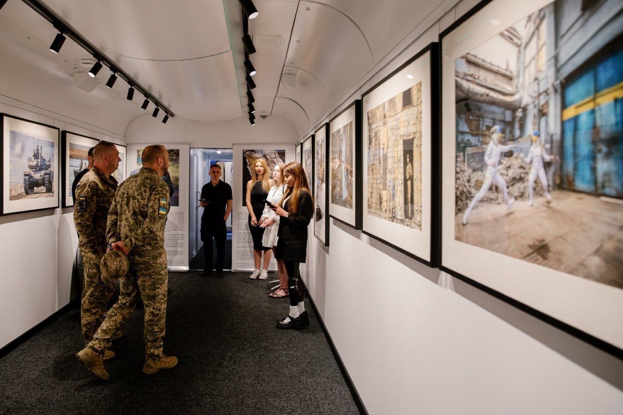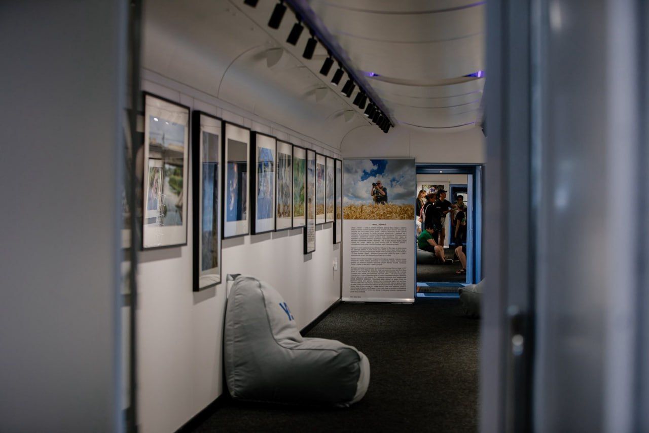 Поезд создали при поддержке Howard G. Buffett Foundation. Теперь он 4 месяца будет курсировать по разным городам Украины и посетит 63 вокзала. Внутри вагонов обустроена композиция. В трех вагонах – выставка снимков "Courage of a Nation".