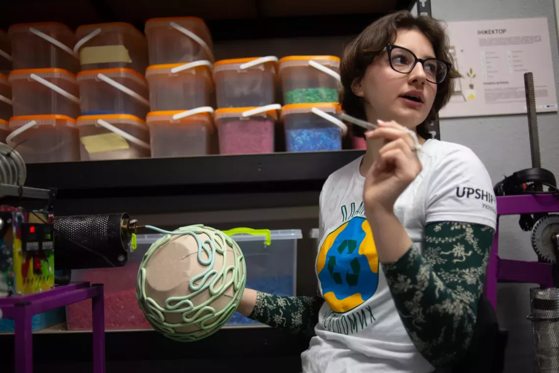 "Каждый ребенок садился за мой экструдер (машина для плавления пластика – 24 Канал) и выдавливал себе какую-то закорючку. Затем мы эти элементы соединяли, и получались разные брелоки в форме то велосипеда, то лебедя. А кто-то отдавал свои закорючки на еще один цикл переработки, и мы делали из них целую картину", – поделилась Мария-Елизавета.