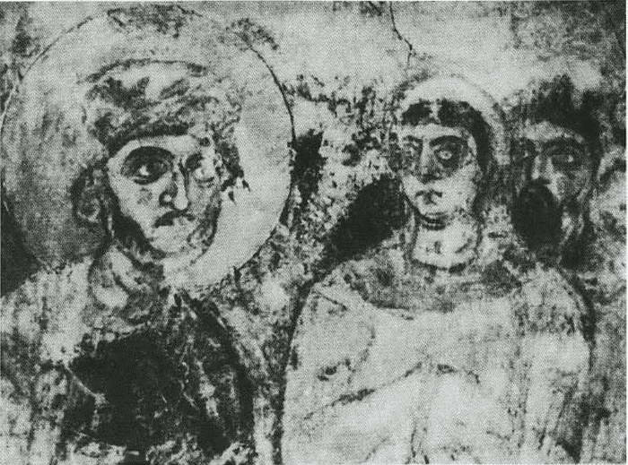 Фреска из Софии Киевской, на которой, вероятно, изображены Ярослав и Ирина / Фото Wikipedia