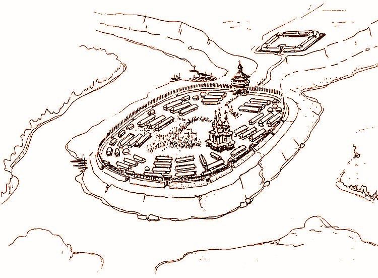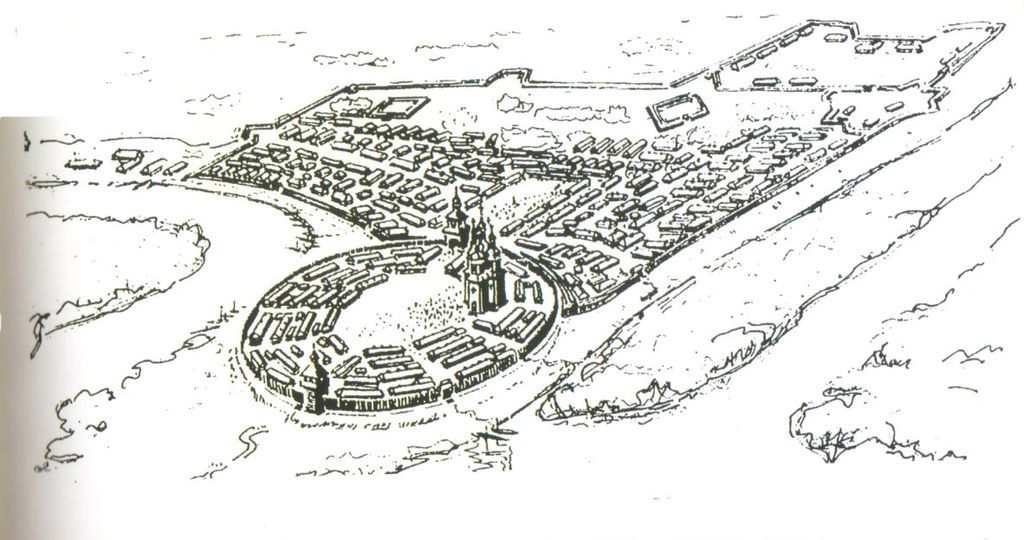 Новая Сечь 1734 – 1775 годы / Гафическая реконструкция В. Ленченко 1989 год