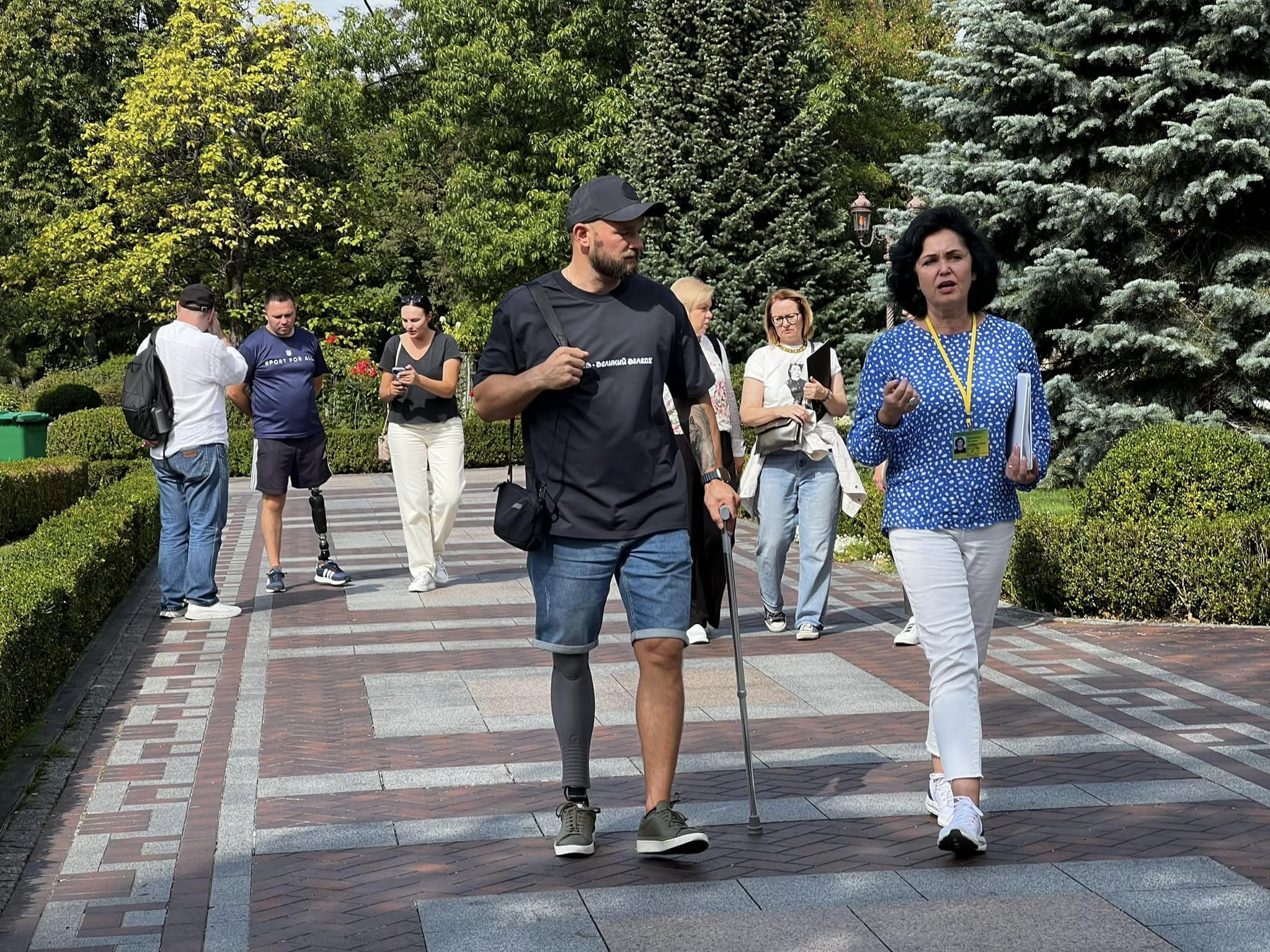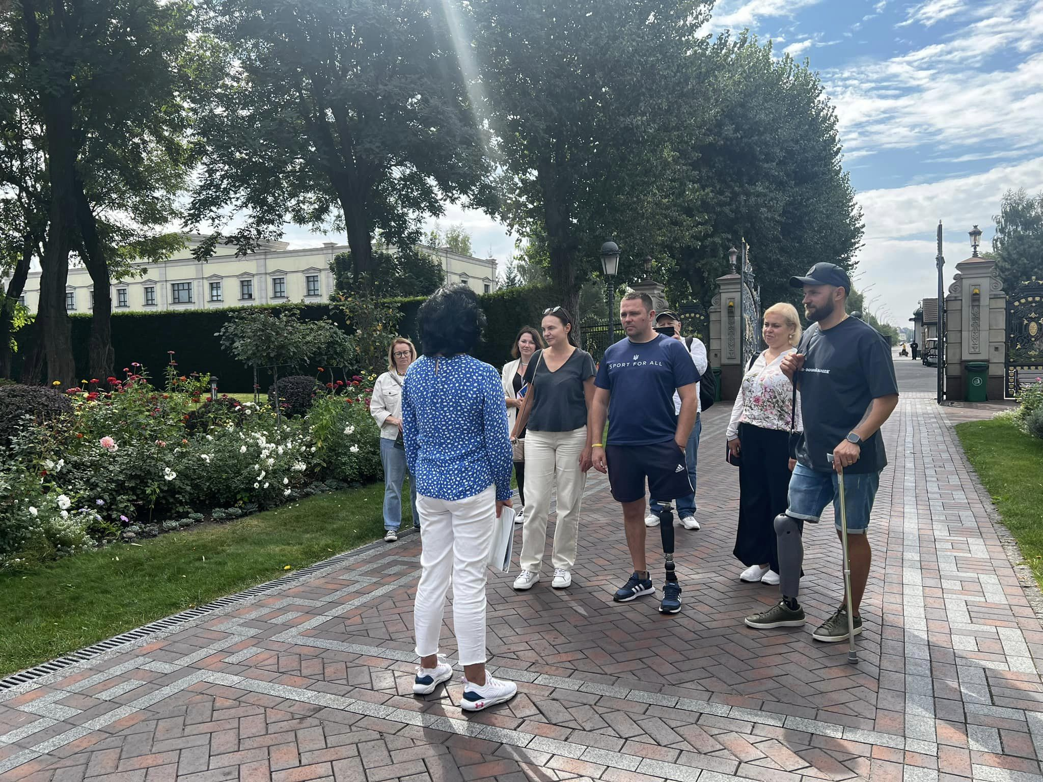 Участники боевых действий, люди с инвалидностью, эксперт по безбарьерности и представители Ассоциации гидов Украины провели осмотр территории парка, чтобы разработать дорожную карту экскурсионных удобных маршрутов. Особое внимание уделили удобству для матерей с детскими колясками.