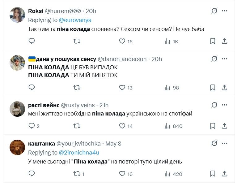 После премьеры от Виталия Козловского, пользователи сети не скрывали своего восторга от украиноязычной версии "Піна Колади" и требовали немедленно добавить новую версию на стриминговые сервисы.