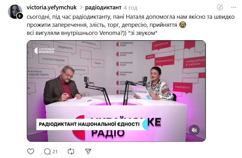 Поэтому после завершения Радиодиктанта в соцсети Treads между обменом впечатлениями появилось немало шуток. Больше об этом расскажет 24 Канал.