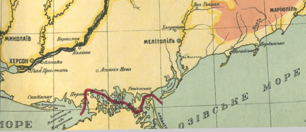 Такие города как Скадовск, Каховка и Перекоп также имеют другие названия в атласе – Скадовское, Кахивка и Перекип. Конотоп в атласе назван как Конотип, а Лубны как Лубни.