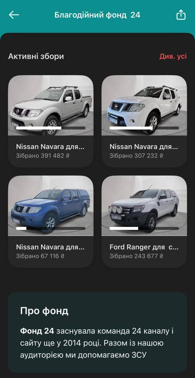 Среди фондов, куда можно направить 1 000 гривен от государства есть также Благотворительный Фонд24 – фонд 24 Канала, который помогает Силам обороны с 2014 года.