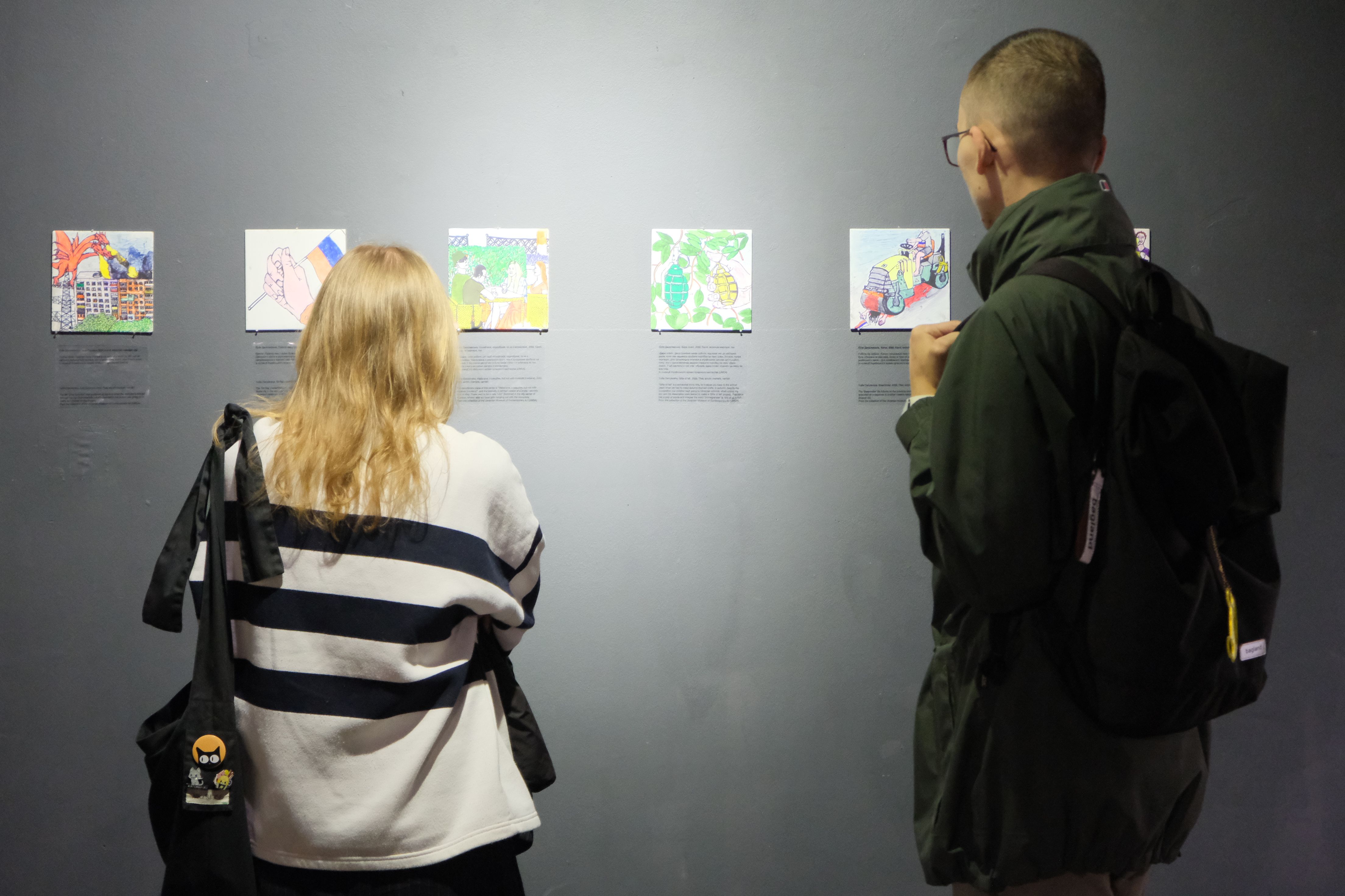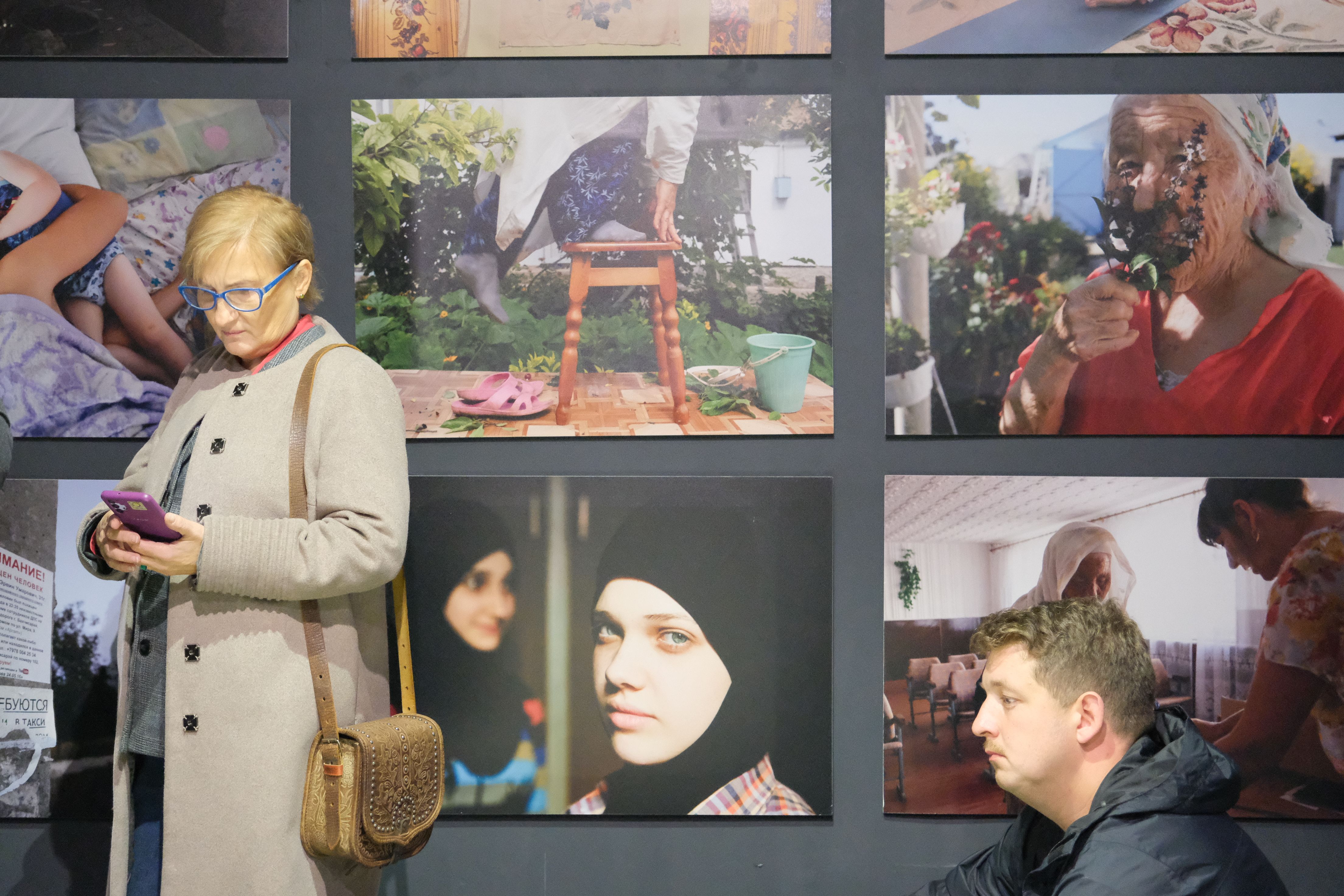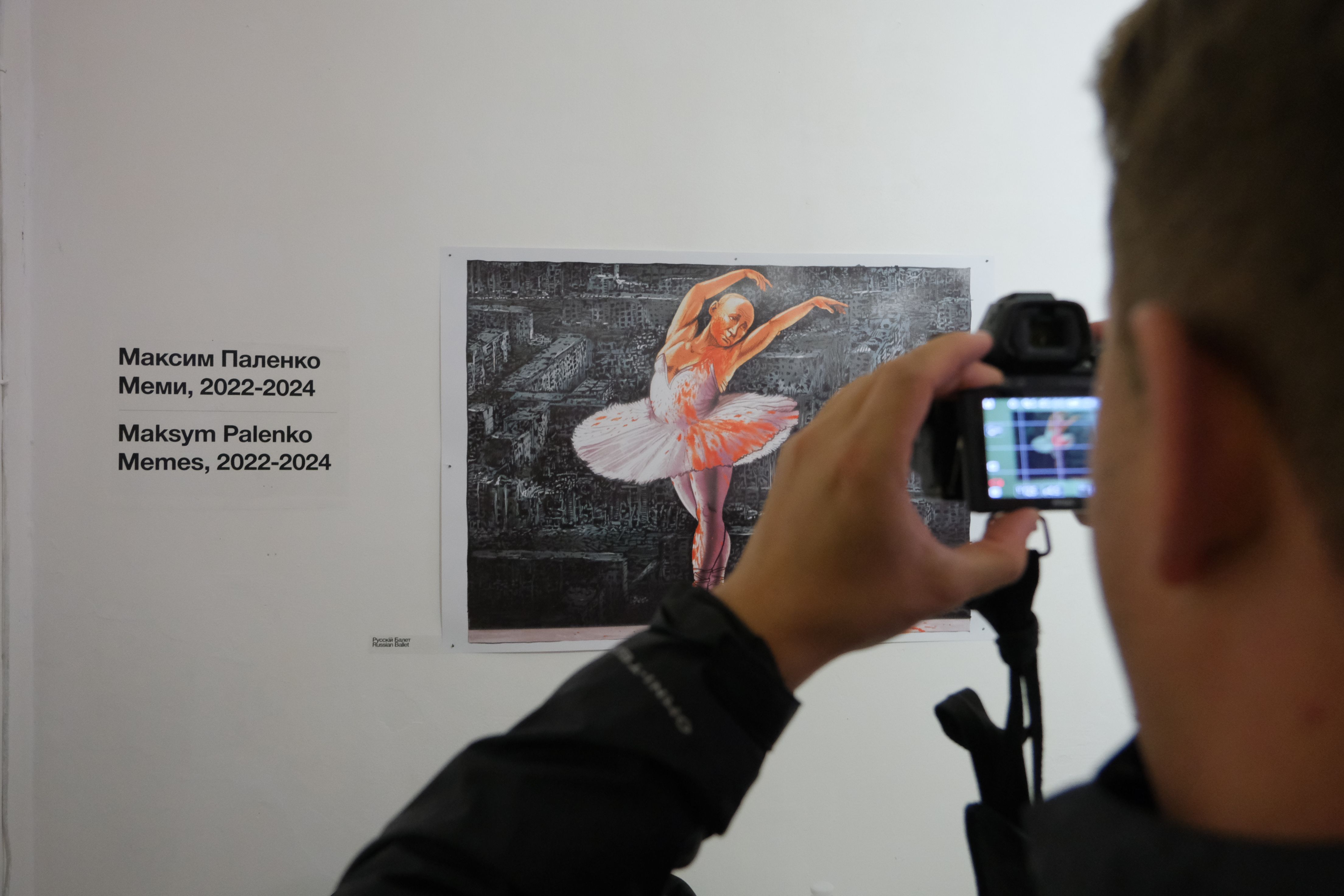 Эксперт по международной коммуникации и правам человека Ольга Муха в день открытия выставки провела экскурсию и подчеркнула важность сохранения человеческого достоинства и проявлений сопротивления в условиях оккупации.