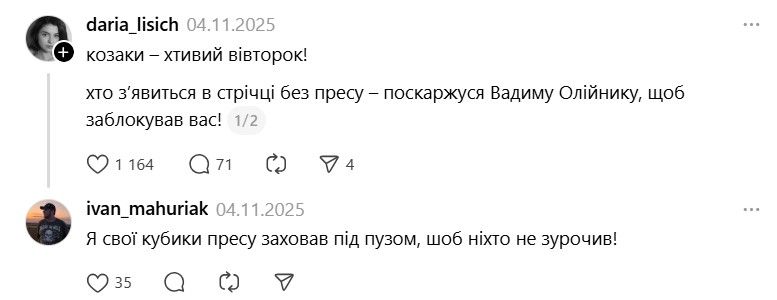 Але можна іноді й обійтися без пресу, правда буде бан від Вадима Олійника / Скриншот