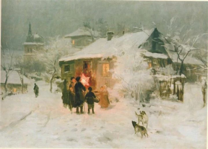 Колядування – один з найулюбленіших різдвяних мотивів у мистецтві XIX – XX століть, пише L’Officiel. Костянтин Трутовський у своїй роботі показав справжній настрій зимового свята. На полотні колядники співають під вікнами хат, отримуючи за колядки гостинці, а поруч діти захоплено граються в снігу. Ця картина передає тепло зимових свят та найкраще демонструє народну різдвяну традицію.