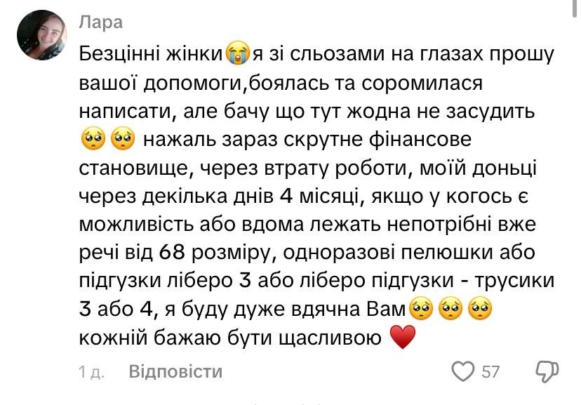 Цей ролик може слугувати прикладом до виразу "Жінка жінці – прихисток". Одна із користувачок запропонувала допомогу – забрати з пологового будинку, якщо це потрібно.