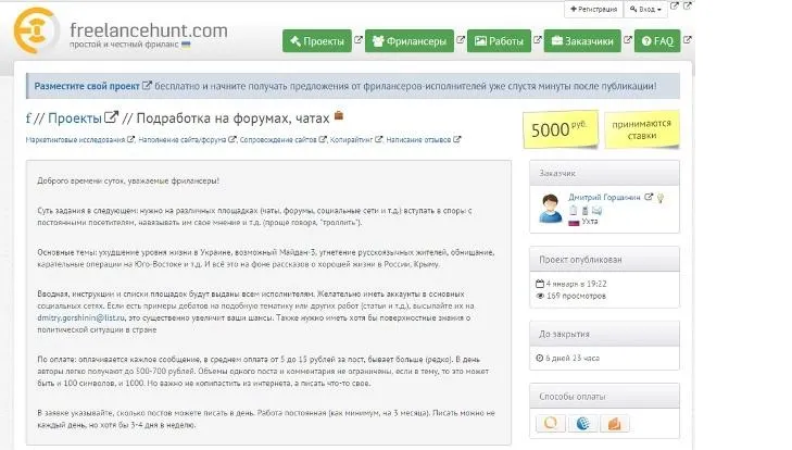 Платять за таку роботу погодинно, в рублях: від 5 до 15 рублів за один пост ($0,08-$0.25). Автори розміщеного оголошення пишуть, що робота буде постійна, щонайменше на 3 місяці.
