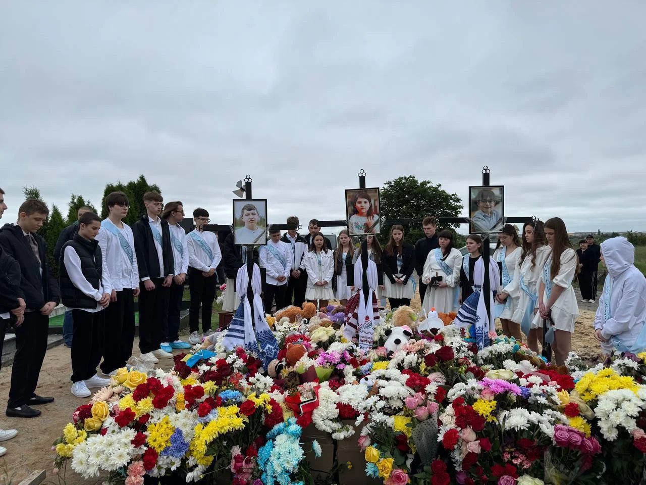 У Коростишеві, що на Житомирщині, 11-класники поїхали на кладовище до свого однокласника Романа Мартинюка. Хлопець і його молодші брат і сестра загинули внаслідок цинічного російського удару.