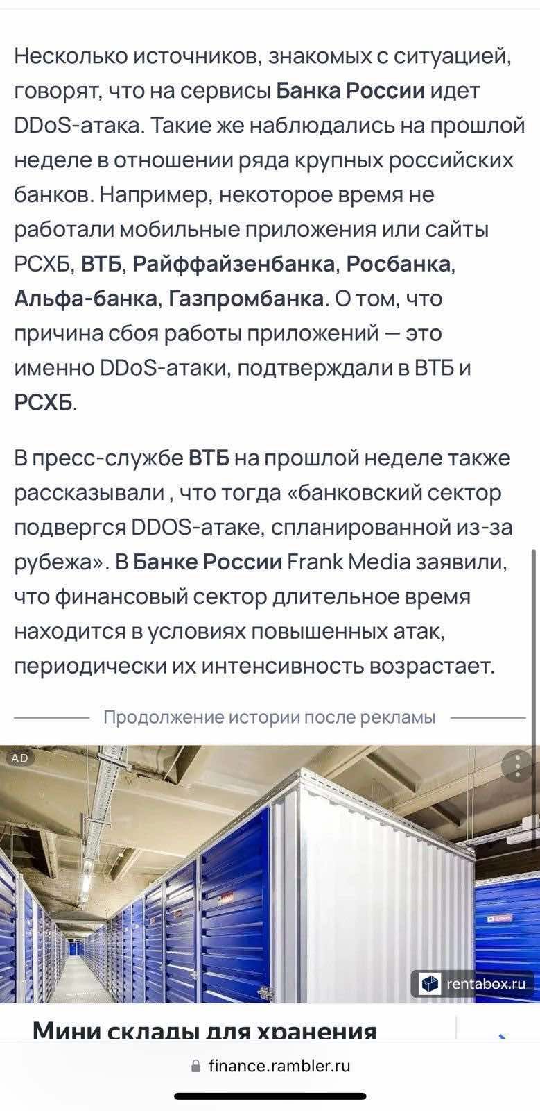 Співрозмовник розповів, що приблизно з 11:00 за місцевим часом ресурси "Банку Росії" працюють або зі значними перебоями, аби взагалі недоступні для користувачів. У самій фінансовій установі визнають факт кіберудару та зазначають, що інтенсивність атаки зростає.