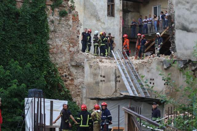 - Приблизно о 16:39 рятувальникам надійшло повідомлення про обвал стіни у центрі Львова.