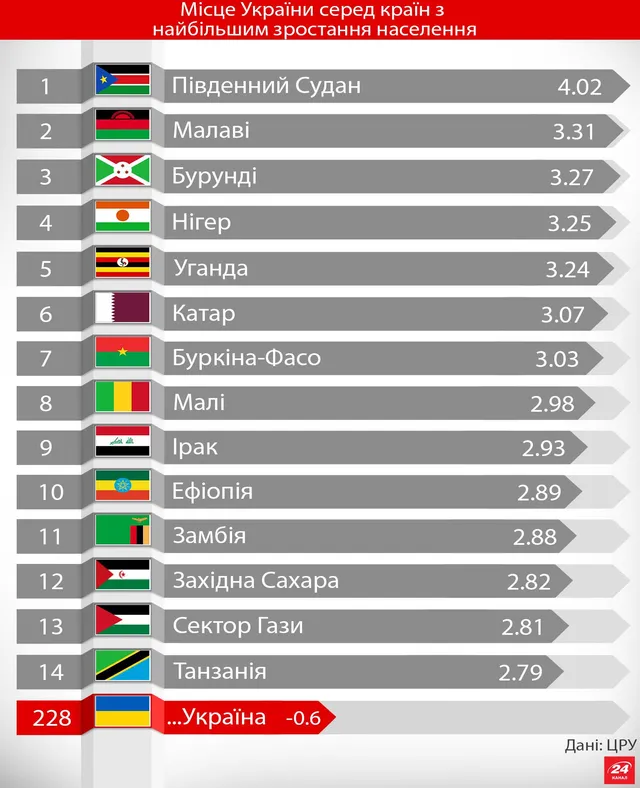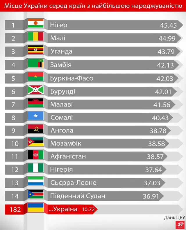 Україна посідає одну з лідерських позицій у рейтингу країн світу по смертності… Разом з тим наша країна пасе задніх в рейтингу країн з найбільшою народжуваністю та приростом населення.