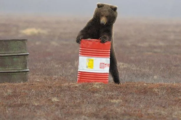 Ведмідь та бочка компанії "Лукойл" / Фото Mirror
