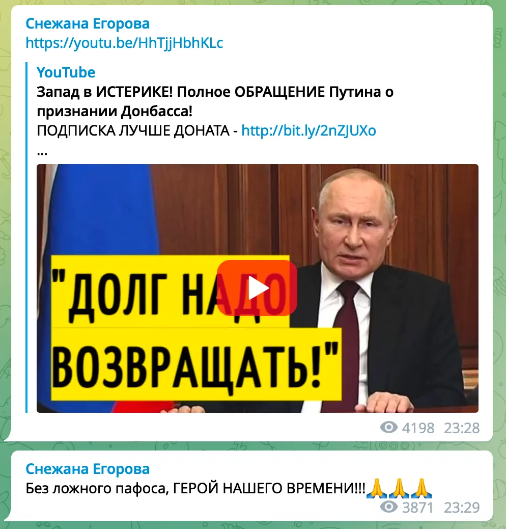 Старіюча українська телеведуча Сніжана Єгорова, яка визнання Росією бойовиків привітала словами "Путин – герой нашего времени" – це ще не всі громадяни Росії.