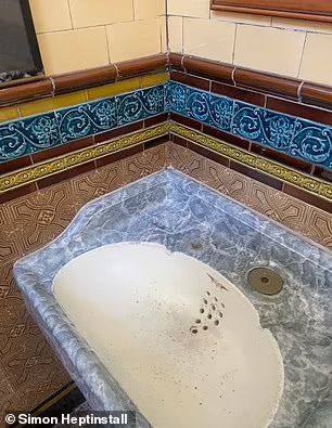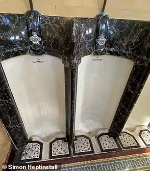 Інтер'єр справді вражає: стіни, облицьовані плиткою, труби з блискучої полірованої міді, висока дерев'яна стеля з мансардними вікнами та старовинними світильниками. Уздовж стін розміщені 20 найвишуканіших пісуарів із чорного мармуру та білої порцеляни.