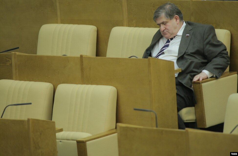 А це член фракції ЛДПР Михайло Хесин засидівся на пленарному засіданні Державної думи РФ.