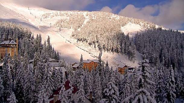 Засніжені вершини Буковелю/ скріншот із камер відеоспостереження