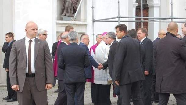 Нагадаємо, сьогодні президент Польщі Броніслав Коморовський відвідує Україну, аби вшанувати жертв Волинської трагедії. На Замковій площі перед костелом зібралися біля 2 тисячі людей. 600 з них - це поляки, які спеціально приїхали на подію. Серед них є і представники духовенства.