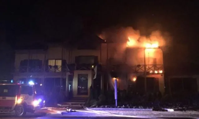 Спочатку загорівся перший поверх комплексу, де розташований ресторан. Далі вогонь перекинувся на дах будівлі. З готелю вдалось евакуювати всіх людей. За словами медиків, двоє отруїлися чадним газом.