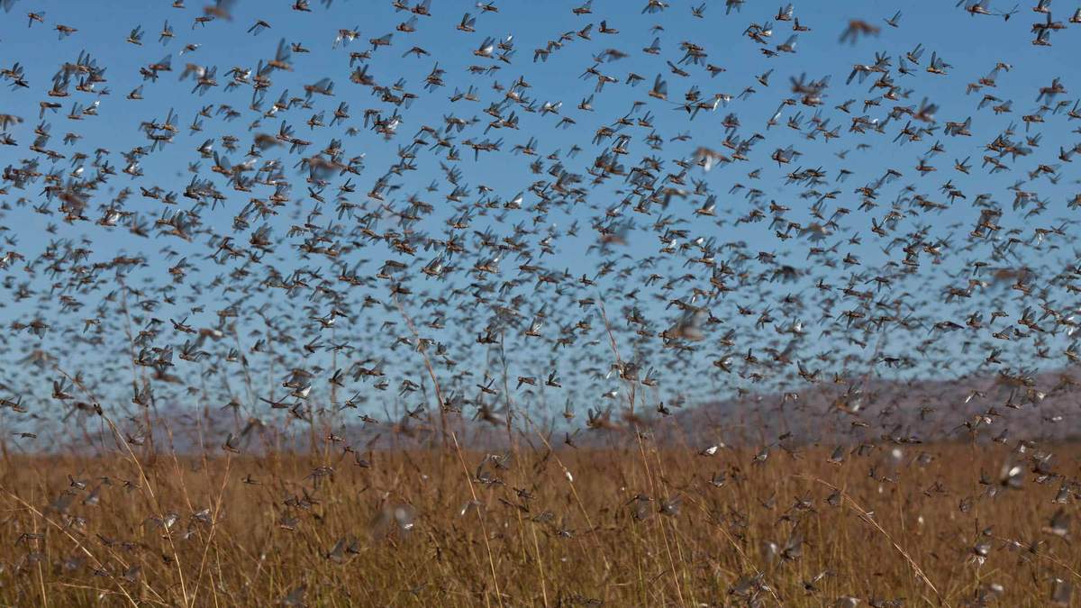 У регіонального Мінсільгоспу заявили, що марокканська сарана заполонила понад 100 тисяч гектарів землі. Як відомо, комахи можуть утворювати зграї чисельністю у сотні мільйонів. Сарана пожирає засіяні поля у Росії.