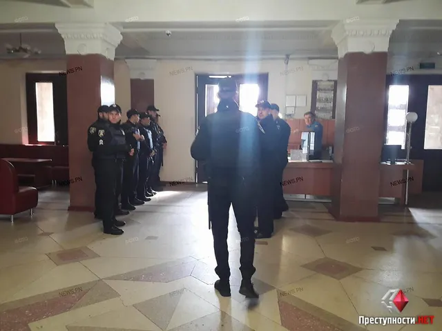 Зараз біля входу до будівлі міськради і по периметру чергують декілька десятків поліцейських та патрульний автомобіль. Ще близько 15 правоохоронців у повному обмундируванні перебувають в будівлі на першому поверсі. Співробітники поліції перевіряють усіх, хто входив в приміщення, запитуючи мету візиту і документи.