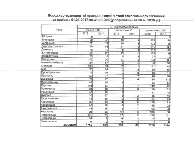 "Чим показове порівняння із минулим роком – влітку 2016 року Верховна Рада збільшила штрафи за водіння у нетверезому вигляді. Санкції стабілізували рівень подібних ДТП у Львівській області, знизили кількість прецедентів і постраждалих у Харківській, Полтавській, Вінницькій областях", – прокоментував дані поліції Пабат.