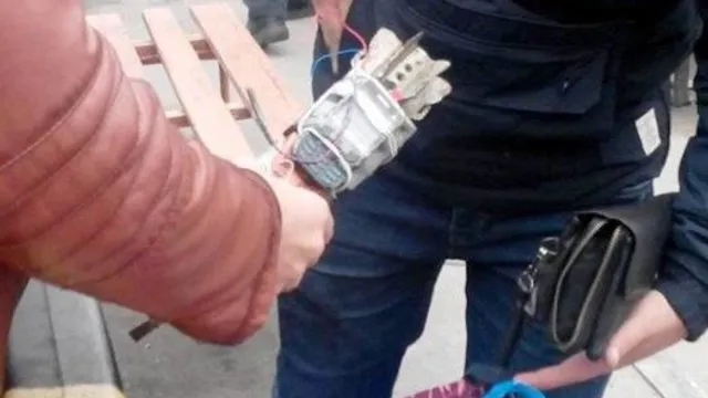 Саморобна міна, складену зі старого мінометного боєприпасу та мобільного телефона.